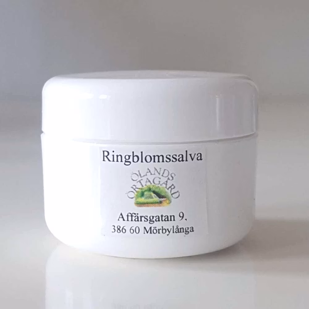Ringblomman har använts långt tillbaka i tiden för att läka sår och lugna irriterad hud. Den sägs även bota en hel rad åkommor, men vi håller oss till att säga att det helt enkelt är en universalsalva för det mesta. Konsistensen är ganska fast och krämen är dryg. Smörj ringblomssalva på torra armbågar, hälar, nagelband, förhårdnader, röd irriterad hud, på brännsår eller på kinderna om du ska ut i kallt fuktigt väder. Bivaxet i salvan lämnar en tunn men effektiv hinna som skyddar både mot uttorkning och kyla.