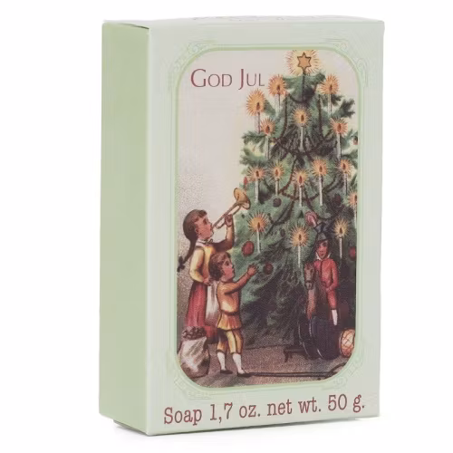 Tvålarna tillverkas av Kungliga hovleverantören Victoria Scandinavian Soap i Skåne med anor från 1914. Tvålstansarna är från 30-talet och används än idag. De bedårande askarna med gamla svenska julmotiv och dofterna är typiska för svensk jul. Välj mellan åtta olika motiv.