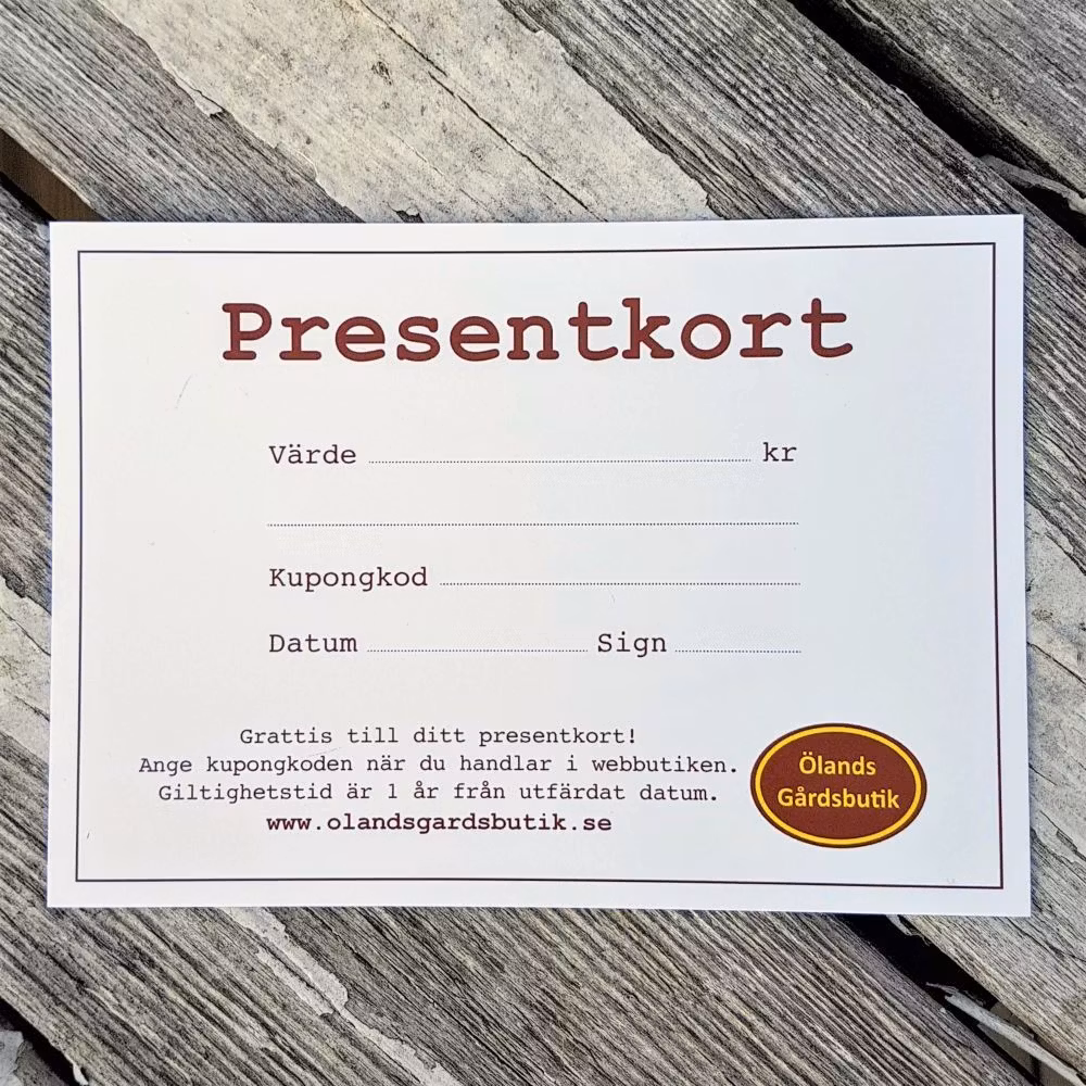 Vi skickar presentkortet med posten antingen till dej eller till den som du vill ge presentkortet. Vill du att vi skickar direkt till din vän så meddela oss namn och adress i beställningen, samt om du vill att vi skickar med ett meddelande från dej.