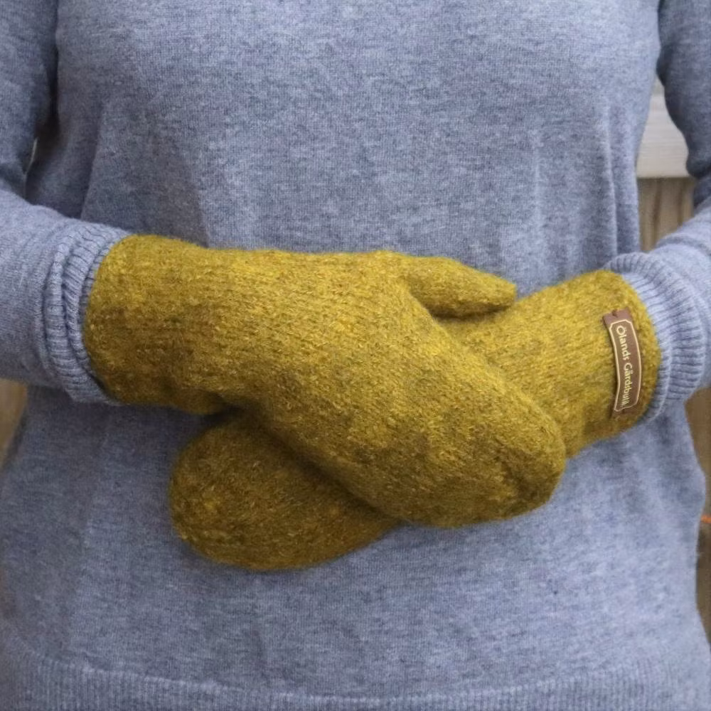 Varma sköna vantar stickade på Öland av svensk ull. Vantarna är lätt filtade vilket innebär att vanten blir tät, mjuk och ullig. Insidan är uppruggad så det känns som att sticka ner händerna i ett varmt mjukt moln.